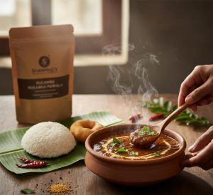 Shanmugi’s Kulambu Masala Powder is the essential, everyday spice blend for authentic Tamil Nadu kitchens. Designed for daily cooking, it captures the soul-satisfying taste of traditional “Kulambu” that forms the heart of a Tamil meal. This masala is crafted from a genuine selection of raw materials, using time-honored recipes that have been passed down through generations. Crucially, it is made without any preservatives, artificial colors, or chemicals, making it a safe, pure, and trustworthy choice for your family’s daily nourishment. It simplifies the process of making a flavorful, aromatic kulambu every day, just like how it’s made in traditional homes.